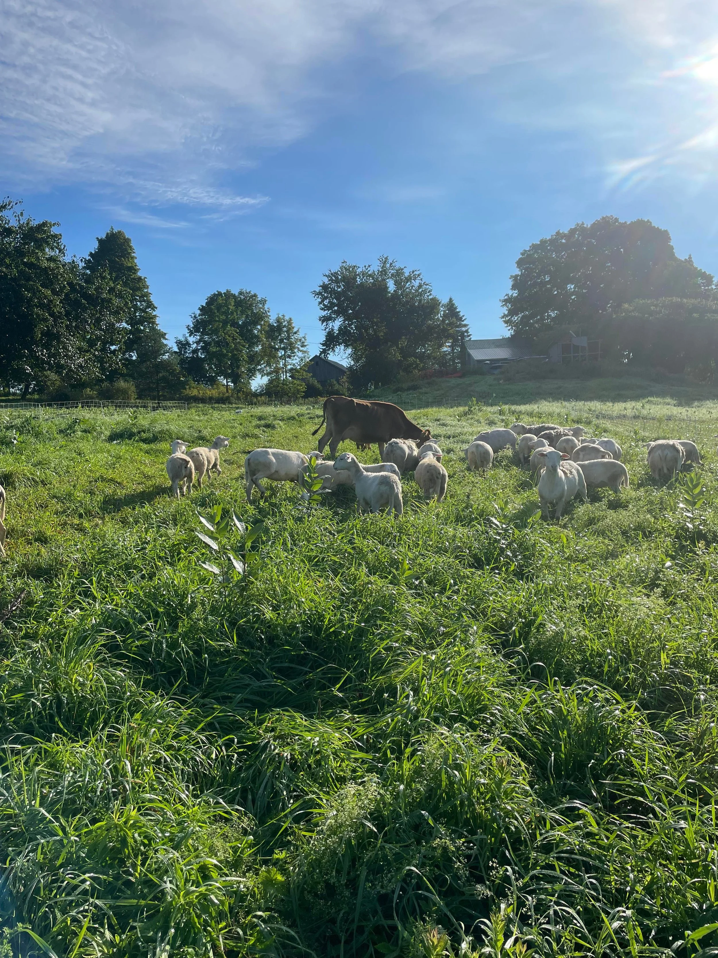 Rose veal is the meat from a calf that has been raised on pasture with a diverse diet. You will not find white veal on our farm. Why? Because our calves are raised on pasture with other calves and rotate through diverse swards with our sheep flock. This creates a much higher quality and higher welfare product you can feel great about enjoying.